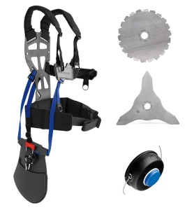 Husqvarna 545FR levereras med: Balance X sele, trimmerhuvud T45X, Multi 300-3 klinga , Scarlett 200-22-1" klinga.